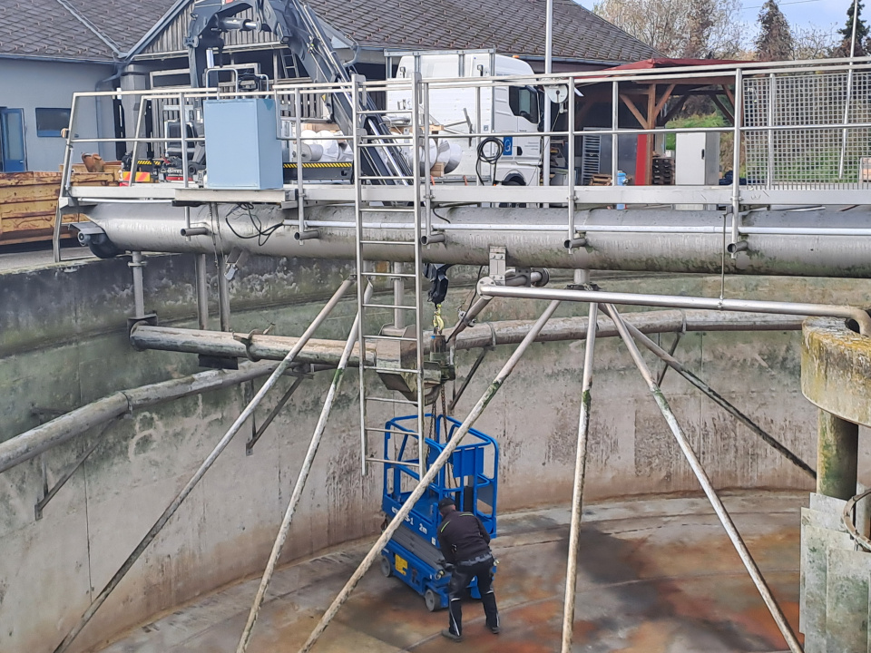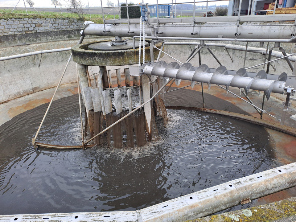 Bei den beiden Nachklärbecken wird die Schwimmschlammräumung erneuert. NKB 2 ist schon fertig!